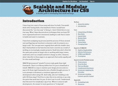 CSS SMACSS代表可伸縮的和模塊化的架構。這個CSS開發(fā)方法背后的核心思想是減少選擇器的深度,以保持模塊化以及降低依賴的HTML結構。SMACSS有五個樣式規(guī)則類別:基地、布局、模塊、狀態(tài)和主題。